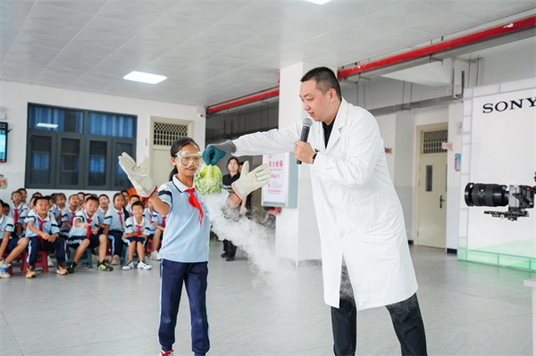 索尼探梦为师生带来了一场精彩科学秀,“漂浮保龄球”“气球火箭”“神奇的液氮”等趣味实验轮番上演,引发阵阵惊叹与掌声。孩子们在互动中直观理解科学原理,更真切感受到科学的奇妙魅力,提升对科学探索的兴趣。