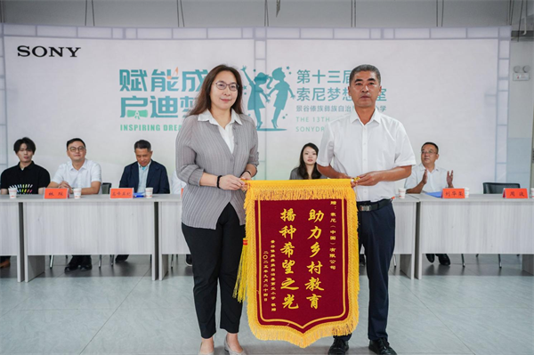 景谷县第三小学向索尼中国赠送感谢锦旗