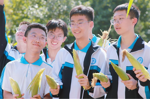 近一个小时的劳作,许多学生后背的校服渗透,手掌磨出微红。“以前总嫌食堂饭菜不可口,今天掰了玉米才明白,没有农民的辛勤劳动,哪有我们的‘现成饭’?”高一(1)班学生们捧着自己掰的第一根玉米说,“从今以后,我们一定把餐盘的食物吃得干干净净,坚决杜绝浪费行为。”