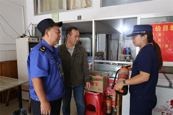 检查组重点走访各临街商铺、餐饮场所、小型超市等“九小场所”,细致排查各门店是否违规住人、疏散通道和安全出口是否畅通、消防器材是否配备齐全且完好有效、用火用电用气是否规范等情况。针对发现的个别店铺存在货物堆放占用通道、电气线路敷设不规范、灭火器压力不足或被遮挡等问题,检查人员现场指出并责令立即或限期整改,要求门店负责人严格落实消防安全主体责任,及时消除隐患。期间,检查人员同步开展消防宣传,向商户发放宣传资料,结合秋季火灾特点和实际案例,讲解日常防火注意事项、初起火灾扑救方法及火场逃生自救技能,并现场指导灭火器正确使用方法。检查组强调,“双节”期间人流量大、经营活动频繁,各商户务必克服麻痹思想,加强日常消防安全自查,确保经营安全。