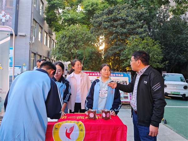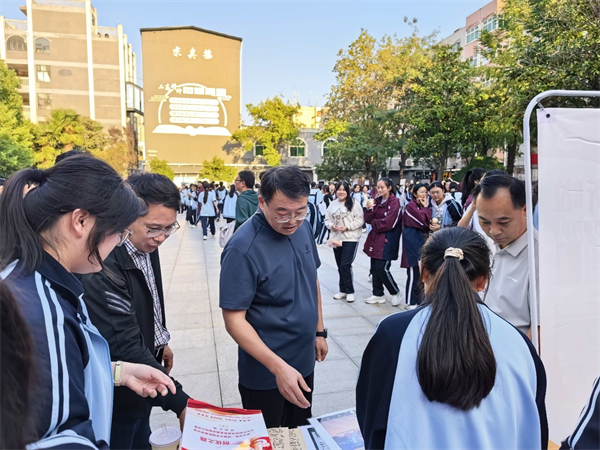 校党委书记赵勇君(图中)等领导来到活动现场,与学生们亲切交流。陈琦摄