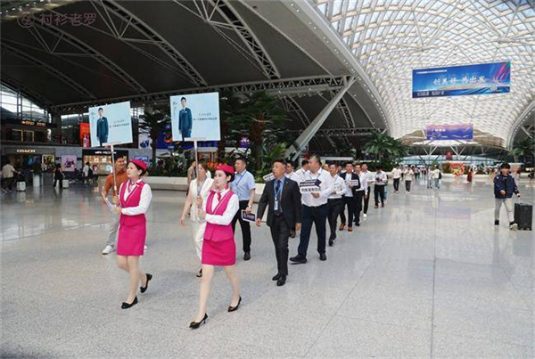仪式现场,广州南站站内大屏循环播放着品牌主题影像,从面料甄选到工艺细节,从立体剪裁到成品呈现,生动展现了衬衫老罗多年来专注于高端衬衫制作的匠心历程。车厢内,枕巾、小桌板、行李架等位置巧妙融入了品牌视觉元素,营造出优雅与品质并存的出行氛围。品牌还特别设置了互动环节,向旅客赠送定制礼品,寓意着对每一位在旅途中奔波奋斗者的崇高敬意。