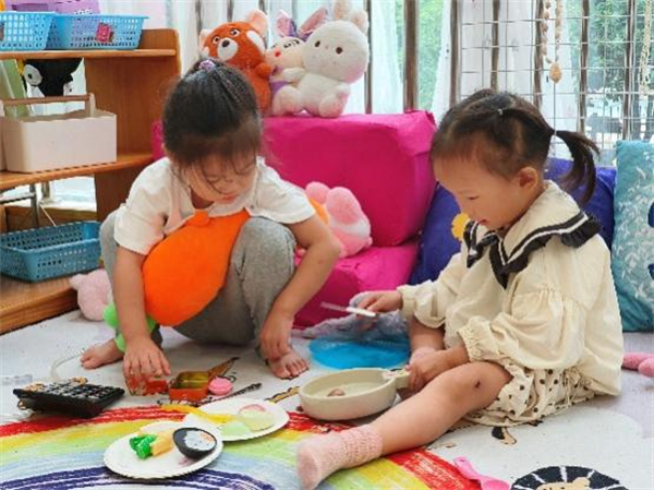 游戏环节成为幼儿社交能力发展的关键。室内活动中,孩子们从羞涩观望转变为主动结伴游戏,积极参与积木、拼图、角色扮演等活动;户外区域如“儿童部落”“咕咕院儿”等,则成为他们释放天性、探索合作的重要空间,友谊在欢乐互动中悄然萌芽。