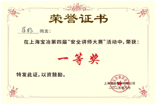 决赛中,上海宝冶长春分公司崔鹤以《技术赋能,筑牢根基从关键工序技术管控看现场本质安全》为题,围绕“认知与责任、关键工序技术安全要点和让技术成为安全管理的‘倍增器’”等三个方面,结合自身岗位经验充分诠释了技术赋能安全的成效,展现了良好的职业素养和精神风貌,得到了评委们的一致好评,荣获本次安全讲师大赛一等奖。