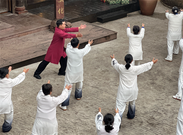 (简橙太极课首席导师、武当三丰派太极传人薛精医华在带练太极)