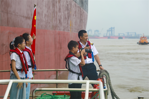 江苏镇江:“红领巾”探引航,感受长江航运“大时代”