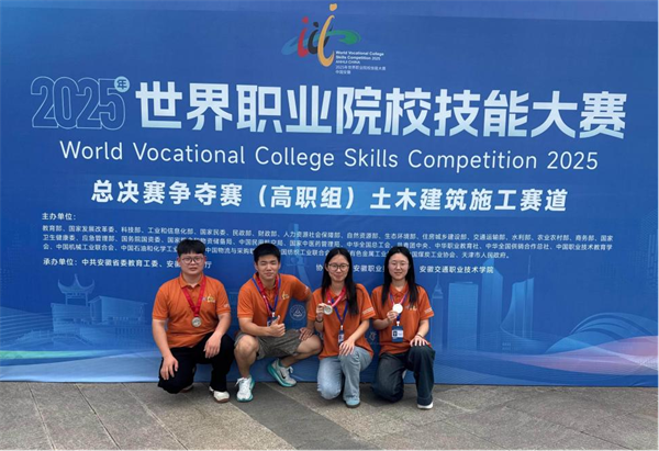 世界职业院校技能大赛由教育部等33家部委和单位联合主办,是我国职业教育的顶级赛事之一。本届土木建筑施工赛道比赛汇聚了来自全国28个省、自治区、直辖市的顶尖队伍,竞争激烈。在这场高水平的竞技中,由宁建伟、何婷婷老师指导,郑天赟、刘梦、吴宇杰、李艳四位同学组成的参赛团队,凭借扎实的专业知识、娴熟的操作技能与出色的团队协作,历经多轮严格考核,最终赢得评委一致认可,荣获银奖。