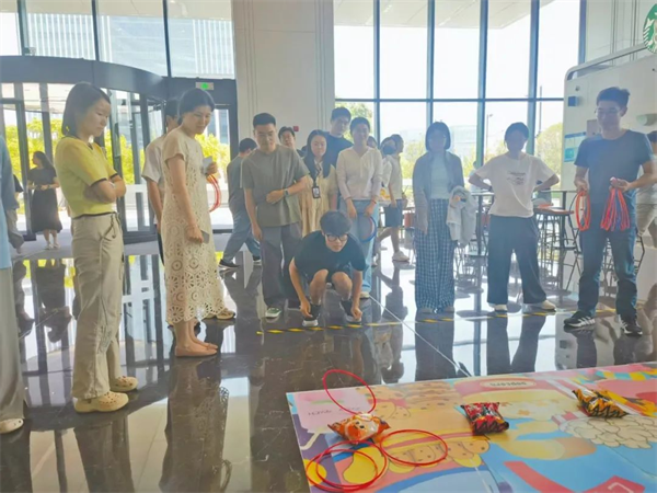 本次活动特别设计了三项互动挑战:趣味套圈、筷子夹零食、零食传递赛——不仅考验参与者的专注力与协作力,更唤起了大家儿时的游戏记忆。在轻松愉悦的氛围中,同事们从“点头之交”到“并肩作战”,互动中收获了笑声,也拉近了彼此的距离。