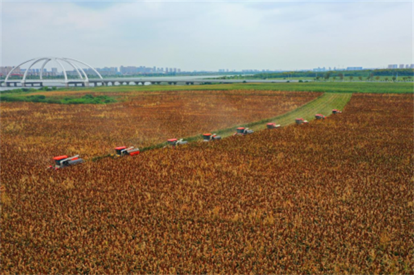 第二年种植高粱的曹琛鑫,如今已对各个环节的管理了然于胸。这背后,藏着他和全体技术人员的不断钻研。“过去,沿岸以小农种植为主,田块小而散,种植技术落后,基础设施薄弱,机械化程度低,粮食产量上不去,种粮效益大打折扣。”曹琛鑫说,江心沙农场接手后,他和团队迅速推进规模种植和一体化全农服务,夯实科技化、机械化、智能化“硬支撑”,同时因地制宜,将油料扩种与休闲观光深度融合,开展“围湖造油”行动,既打造了新的网红打卡点,又实现了从“藏粮于地”到“藏粮于技”的转变。