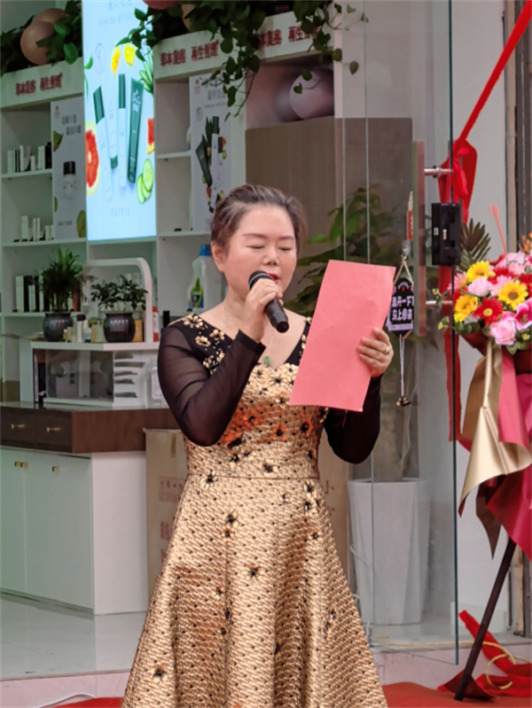 庆典在主持人的宣布中正式拉开帷幕。新店店主柴雪云首先上台讲话,她用简洁而真挚的语言,分享了自己与仙妮蕾德结缘的故事,表达了对店铺未来发展的期待,以及为当地消费者提供优质产品与服务的决心。