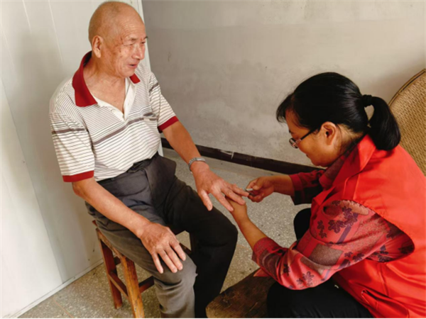 张志中老人是合东村的抗美援朝老兵,如今已九十一岁高龄,与同岁的爱人相伴生活。岁月在张爷爷身上留下深深的烙印,如今他行动迟缓,言语也已模糊,昔日的荣光与现时的无力在他心中形成了巨大落差,眼中总会闪过一丝焦灼与黯然。助老员王苏清懂得这份沉默背后的重量,她来时从不急着干活,总是先坐在老人身边,轻轻握着他颤抖的手,像解读密码般耐心分辨他模糊的发音。这天,她一边为老人修剪指甲,一边回忆起村里人口中他当年的英姿。“张爷爷,您可是我们合东村的骄傲啊!”这句话让老人浑浊的双眼顿时有了神采。张奶奶在一旁轻声对王苏清说:“他啊,心里憋屈。一辈子要强的人,现在连剪个指甲都要人帮忙。”王苏清的动作更加轻柔:“这是我们的福分。”理完发,老人望着镜中的自己,嘴角微微上扬,他努力而清晰地说出两个字:“精……神。”此刻,服务的意义远不止于生活照料,更让老英雄重拾了内心的尊严。