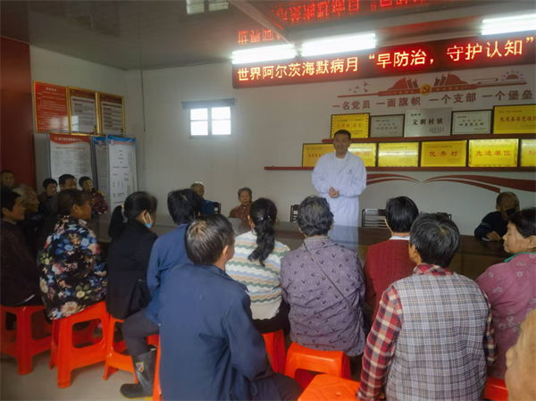 阿尔兹海默症起病很隐匿、进展缓慢,早期症状常常被忽视,往往发展到中晚期才被确诊,所以早期识别、早期干预、早期就医显得尤为重要。在活动现场,工作人员集中宣传讲解阿尔茨海默病的早期征兆(如记忆减退、执行功能下降等)和危险因素以及干预方法,涵盖饮食、生活方式、体育锻炼等方面;与老人们互动教学预防阿尔兹海默症的手指健脑操,积极引导老人树立主动管理脑健康的理念。