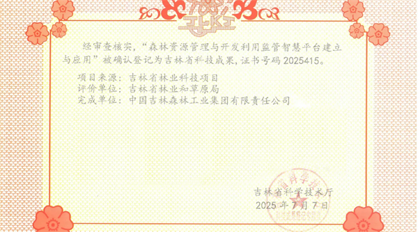 该平台于2025年7月登记为吉林省科技成果,并被国家林草局列为全国林草信息化优秀典型案例,成为数字赋能林业现代化发展的示范标杆。