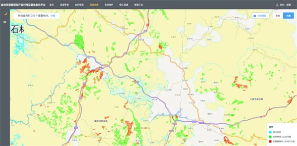 平台整合了森林资源大数据查询展示、非木资源发包登记落地上图、森林碳汇资源评估展示等多项数据资源,构建起林业“一张图”管理新模式。其中,森林资源管理模块实现二类调查数据的综合快速查询,可按照目标树种、森林类别、起源、地类、龄组、郁闭度等因子快速定位目标地块并落图展示,为一线作业提供基础遵循。