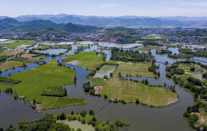 白塔湖国家湿地公园是诸暨市最大的湖畈和生态湿地。湿地区域面积为6400公顷,白塔湖三面环山,共有大小岛屿108个,湖内河网交错,自然曲折,呈现出湖中有田,田中有湖,人湖共居的美丽景象。