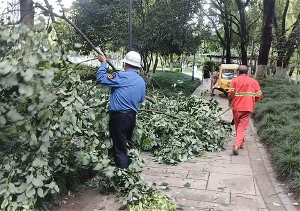 面对这一突发状况,队员第一时间向上级汇报现场情况,并迅速启动应急响应机制,与区绿化管理部门紧密协作。绿化工作人员携带专业工具火速抵达现场,执法队员则在一旁维持秩序,引导过往市民绕行,避免二次事故发生。他们分工明确,有人负责清理较大的断枝,有人俯身捡拾零散的落叶,还有人及时装运清走所有杂物。整个过程高效有序,配合默契。