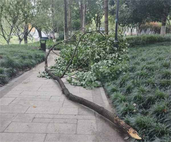 发布时间:2025-10-23 14:31:43 | 来源:中国网 | 作者: | 责任编辑:孙玥近日,翠苑街道综合行政执法队队员在日常巡查中,发现冯家河沿岸一棵行道树突发树枝断裂。断裂的枝干与茂密的树叶散落一地,占据了部分路面,不仅妨碍了行人、非机动车的正常通行,更在秋雨来临的季节带来了不容忽视的安全隐患——湿滑的路面与杂乱的枝叶交织,极易导致滑倒、绊倒等意外发生。