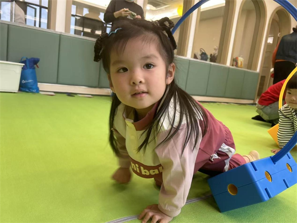 通过《问好歌》活跃现场氛围,拉近了参与家庭之间的距离。在《小熊过山洞》游戏里,亲子参与度很高,孩子们对游戏表现出浓厚的兴趣,大多数家庭全程投入其中,现场氛围欢乐又有序。