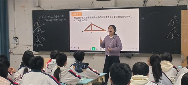 在研讨课展示环节,彭州航空动力园区实验中学初中数学组曾春瑕老师展示了一堂精彩的研讨课,研讨课的课题为九年级《相似三角形的性质》。