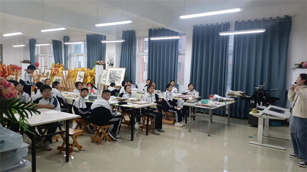 墨韵社团的教室里,笔墨纸砚整齐摆放,满是传统文化气息。同学们围在画板前,仔细聆听老师讲解传统山水画的构图布局技巧。后续,他们将从临摹历代名家名作起步,逐步掌握勾、皴、点、染等基本笔法,让水墨在笔尖流淌,勾勒出心中的诗意与远方。