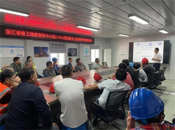 身体健康是拼搏和奋斗的基础。在五马街道D-07a项目现场,来自浙江省普卫健康宣教中心的专家正在为项目工友们讲解急救常识与职业病预防知识,这是中建国际投资(浙江)有限公司第三党支部(以下简称“浙江公司第三党支部”)推进“健康有呵护”行动的生动一幕。