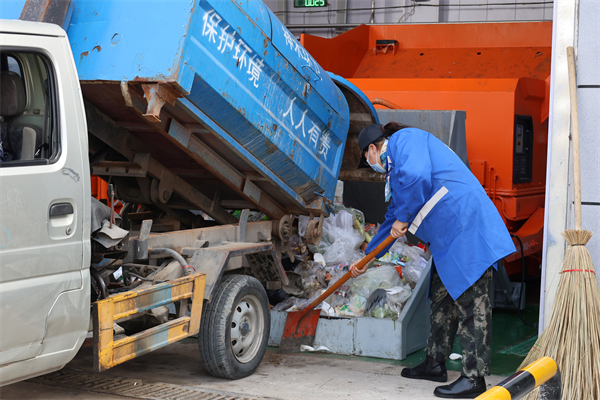“我们从早上6点到晚上8点半,中午1点倒班,一分钟都不耽误。垃圾收过来我们压缩好,有不干净的卫生我们打扫干净,让垃圾‘快进快出’,不影响周围居民的生活。”刘彩平说。