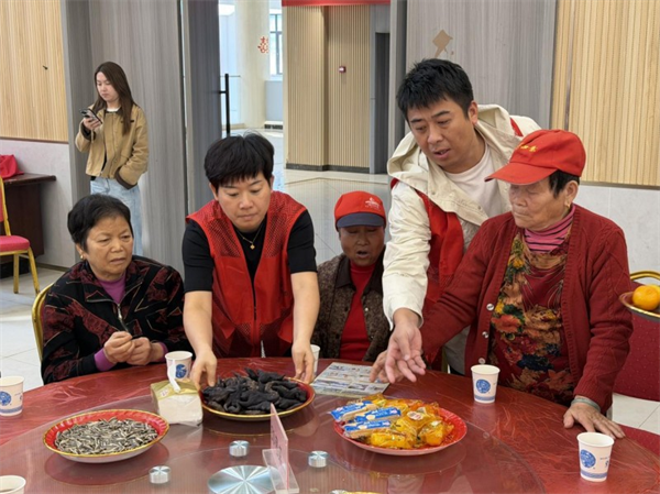 除了沉浸式的戏曲盛宴,活动还设置了趣味与实用兼具的互动环节。社区工作人员与志愿者通过有奖问答、发放宣传折页等形式,向居民普及防诈反诈、垃圾分类、扫黄打非等生活知识,让大家在轻松氛围中收获实用技能。现场精心准备了重阳特色茶点,社区志愿者们忙前忙后,细致地为老人们添茶递点、贴心陪伴。老人们围坐一堂,与邻里畅谈家常趣事,也和志愿者们分享过往岁月,在氤氲茶香与欢声笑语中,感受邻里间的真挚情谊与志愿者的暖心关怀,让“远亲不如近邻”的温暖在社区传递。
