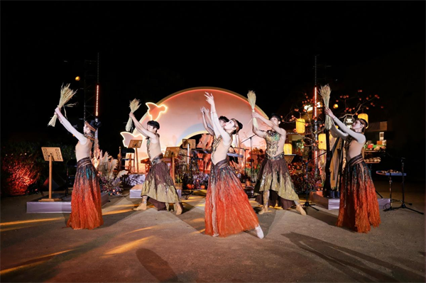 在“良良的打谷场”,亲子家庭弯腰挥镰、躬身打谷,指尖触到稻穗的粗糙,掌心接过新米的温热,在汗水中读懂“粒粒皆辛苦”的千年分量;“良良的打谷场”研学营以“植物展探秘,农耕实操,市集打卡”的闭环行程,让青少年用双手触摸良渚稻作文明。而“稻田的礼物”美育手作中,稻穗化作画笔下的风景;稻香音乐会上,旋律裹着谷物的气息流淌,再搭配夜间秋季活动《秋韵良渚》开场舞的灵动、《盛世国乐》的壮美,从视觉、听觉到触觉,良渚稻作文化正悄悄融入现代人的生活日常。