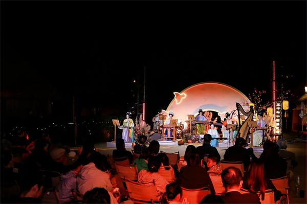科技与传统的碰撞更添新意。“良渚VR大空间·神纹之约”让访客戴上设备就“踏入”五千年前的古城;舞台上,《良渚寻迹》合奏循着乐声追溯先民生活图景,箜篌独奏用细腻音色交织古画秋意与良渚风情,国潮乐则点燃现场活力,展现“守正创新”的文化底气。