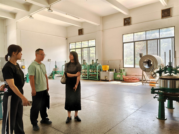 活动当天,唐辉老师到黄磜镇水云间生态茶园、雪峒丰盛茶场的加工车间、发酵间等生产一线,实地查看了茶叶到成品的整个加工流程。她仔细观察了企业的现有设备、工艺流程等情况。唐辉老师凭借其敏锐的观察力和深厚的专业素养,迅速捕捉到影响茶产品品质和风味的关键因素。同时,她还特别关注了茶叶加工副产物的综合利用情况,建议企业利用茶末开发茶食品、茶提取物等高附加值产品,不仅能提升企业利润空间,更能直接带动上游茶农的鲜叶收购价格,实现“优质优价”。在延伸产业链方面,她特别强调了“变废为宝”与“特色化发展”对黄磜经济与就业的拉动作用,不仅为企业开辟了新的增长点,更能创造新的就业岗位,吸引本地劳动力,实现“家门口”就业,让产业发展的成果惠及更多乡镇居民。同时还提出了差异化的发展路线,指导企业依据自身资源禀赋,打造具有地域标识的特色茶产品,避免同质化竞争,提升产品市场竞争力,从而稳定并扩大生产规模,为当地茶农提供长期、稳定的茶叶销路,带动茶农增收致富。