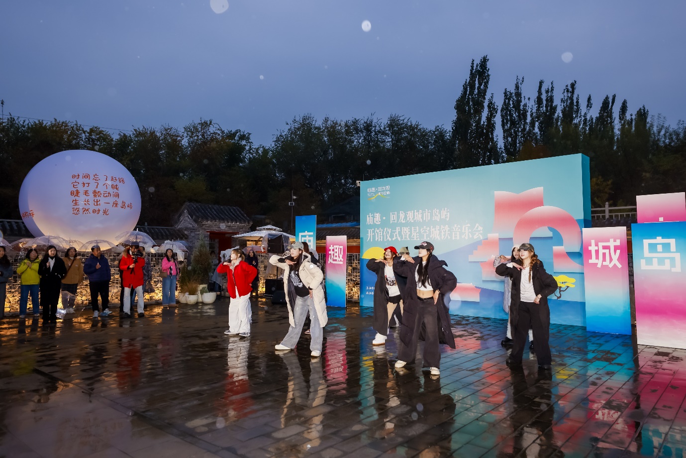 活动邀请到文化讲师、设计师、咖啡师、花艺师、音乐人,以及骑行、跑步、滑板等领域的社群达人齐聚现场,作为主理人代表成为首批“登岛岛主”。未来他们将深度参与庙趣的活动策划与组织工作,吸引更多有同频爱好的年轻人“登岛”“找搭子”,丰富社交生活。开馆仪式之后,一场星空城铁音乐会接续开场,音乐爱好者们、年轻的观里人在雨中享受一场浪漫的音乐之旅。