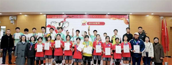 初中组:锦鲤腾跃揽佳绩。初中组的红鲤少年们则多了几分沉稳与果敢。初中女子组的姑娘们巾帼不让须眉,攻防转换间尽显章法,凭借扎实的技术与顽强的斗志勇夺冠军,让红色战袍在领奖台上绽放耀眼光芒;初中男子组的小将们面对强敌毫不退缩,每一次拼抢都全力以赴,最终拿下二等奖,用坚韧书写着“败不馁、战不止”的拼搏篇章。他们在赛场上的每一个瞬间,都将“鲤跃龙门”的精神刻进了成长的年轮。