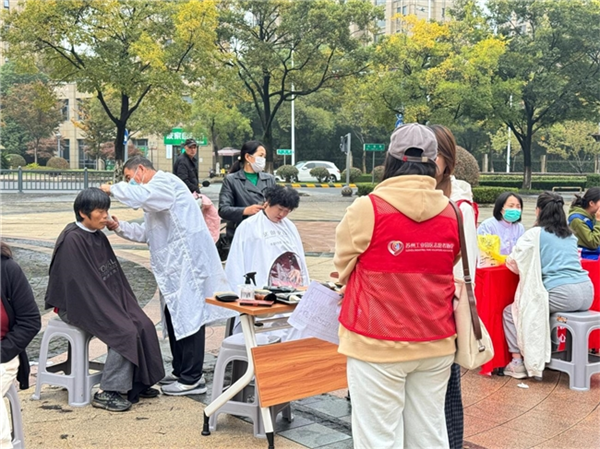 活动现场秩序井然,各项服务贴近生活,深受居民欢迎。在磨刀区,红色管家志愿者凭借专业工具与娴熟技艺,让一把把钝刀锈剪重现锋利;理发区内,志愿者耐心倾听居民需求,为中老年朋友修剪出清爽利落的发型,收获连连好评。