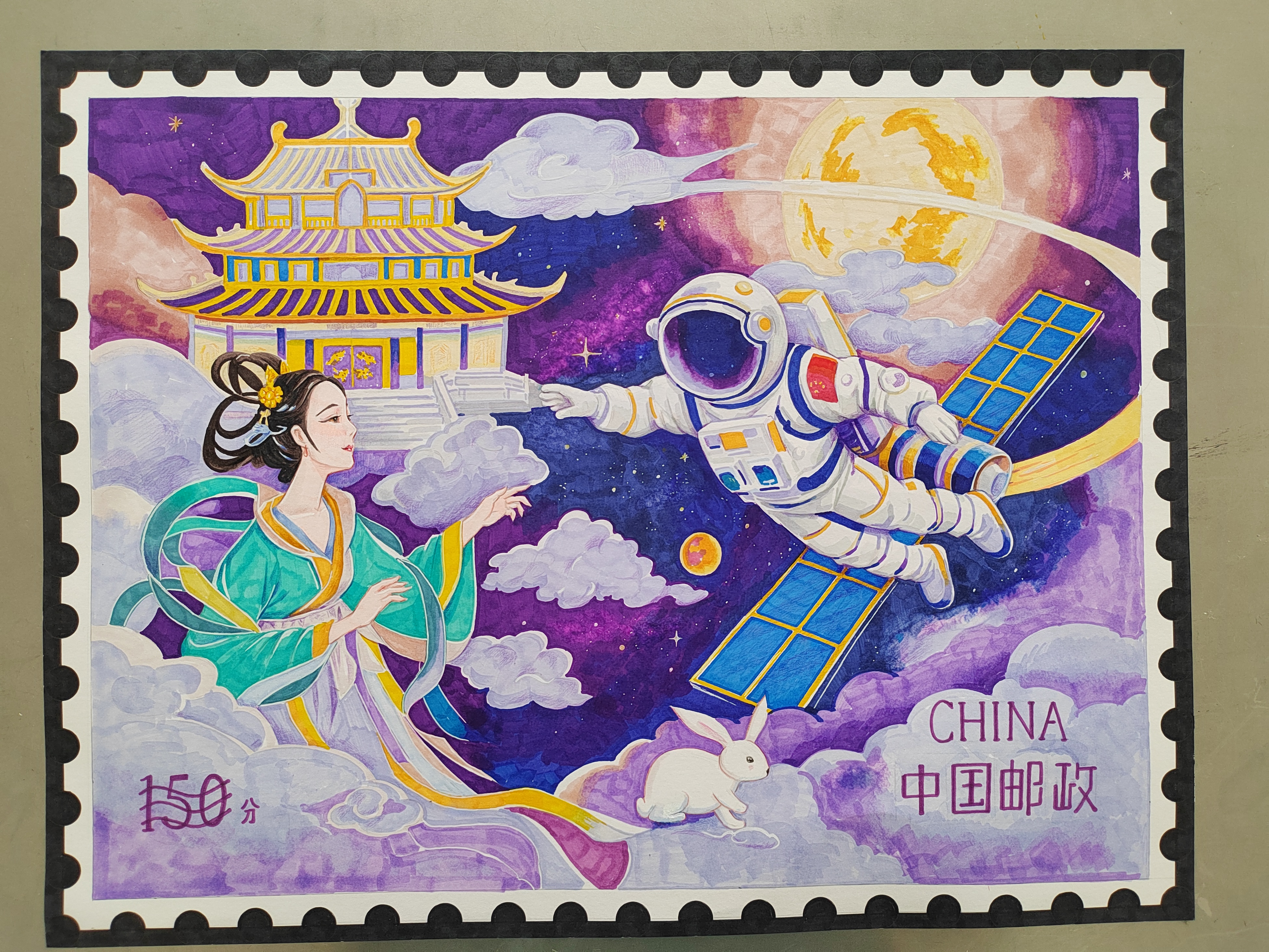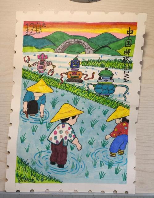 典礼现场特设优秀作品展示区,一幅幅浸润着童真童趣的邮票设计佳作,以斑斓绚丽的色彩、巧思独具的构图与纯粹无瑕的视角,勾勒出孩子们心中的星河与远方——有对科技兴农的畅想,有对家国情怀的抒怀,有对自然万物的描摹,引得现场来宾纷纷驻足凝视、细细品读。