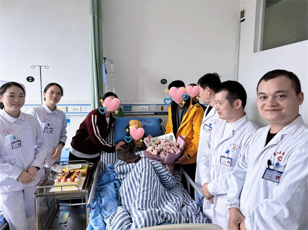 康复期恰逢张娭毑75岁生日。护士长查房时得知后,悄悄召集同事筹备:有人买蛋糕,有人挑红气球,有人练生日歌。生日当天,医护人员捧着蛋糕、举着气球走进病房唱生日歌,张娭毑先是一愣,随即红了眼眶。她颤巍巍接过蛋糕,吹蜡烛时笑中带泪:“你们比亲人还贴心,治好我二十年的腰痛,还陪我过生日,真的太好了”说完紧紧攥着护士长的手不放。