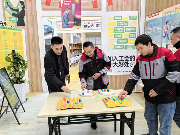 活动现场暖意融融,两大特色环节让劳动者们卸下疲惫、踊跃参与。在“连线冲冲冲、指尖减压挑战”中,参与者站在指定位置,专注的将小球逐个弹入棋盘。每当三个小球连成直线,现场便掌声连连。指尖跳动的小球,让长期紧绷的神经得以舒展。在“盲盒拆拆拆知识赢福利”区域,大家纷纷挑选盲盒,拆开内含工会政策权益或骑行安全知识的题目卡。法律援助、技能培训……原本枯燥的内容,在互动问答中变得生动有趣。活动现场还特别准备了热气腾腾的姜茶,一杯杯暖意直抵心底,驱散户外带来的寒意,让大家在忙碌间隙能喝上热饮、歇好脚,感受到实实在在的温暖。
