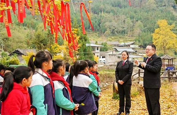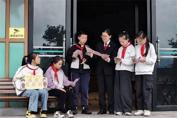 此外,芦山县法院还建立“一室一基地”“一对一帮扶”工作机制,创新“4+N”联合法治教育模式,以“法治副校长、法治进校园、法院开放日”等活动为抓手,围绕《中华人民共和国未成年人保护法》开展巡回审判、法治研学、法庭模拟等活动,让学生在“玩中学”。10月22日,芦山县法院邀请20余名师生在飞仙关开展法治“打卡”318国道主题实践活动,通过沉浸式、互动式、体验式多元形式,将法律知识融入历史人文与自然风光之中,为孩子们送上了一堂别样的法治课。