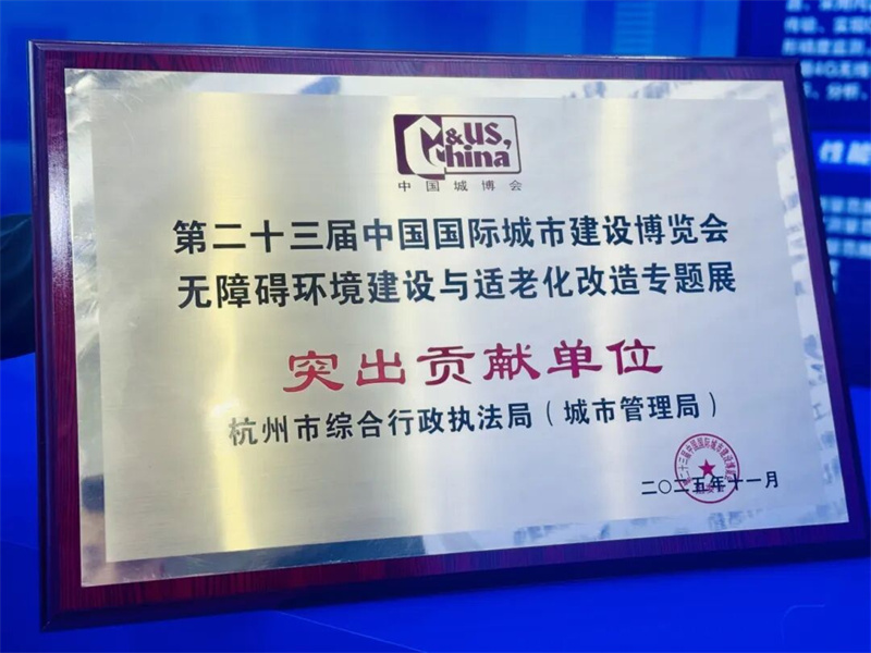 展会上,杭州市综合行政执法局(城市管理局)被评为无障碍环境建设与适老化改造专题展“突出贡献单位”。