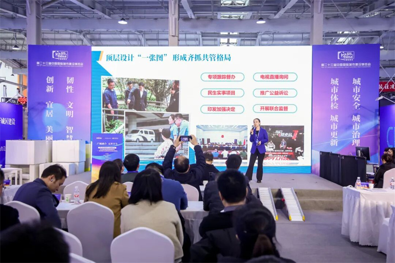 本次展会以“创新、宜居、美丽、韧性、文明、智慧”为主题,杭州市综合行政执法局(城市管理局)从顶层设计“一张图”形成齐抓共管格局,统筹推进“一盘棋”形成部门联动机制,示范引领“一面旗”形成行业经验标准,民生互动“一张网”形成全民共建共享四方面作“打造‘有爱无碍’城市环境,擦亮‘幸福杭州’宜居底色”主题发言。