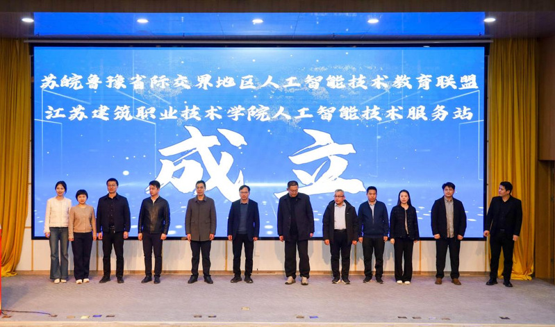 尤为引人注目的是,“苏皖鲁豫省际交界地区人工智能技术教育联盟”与“江苏建筑职业技术学院人工智能技术服务站”正式揭牌成立。这两大平台的落地,标志着四省交界地区在人工智能技术教育领域迈出了跨区域协同、集约化发展的关键一步。前者将整合区域内优质教育资源,推动人工智能课程体系共建、师资队伍共培、实训基地共享;后者则依托江苏建筑职业技术学院的办学优势,为区域内院校、企业提供人工智能技术培训、应用研发与社会服务,打造“技术赋能+人才孵化”的双引擎。