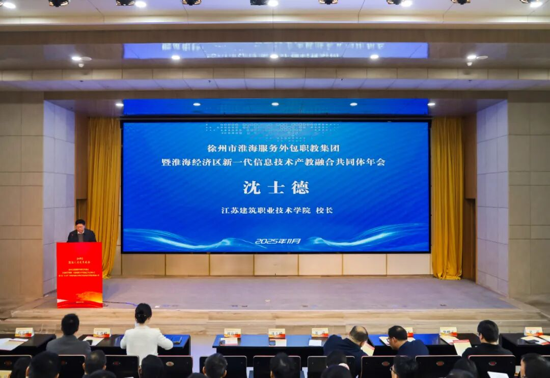 发布时间:2025-11-28 15:02:28 | 来源:中国网 | 作者: | 责任编辑:吴一凡彭城初冬,群贤毕至;产教协同,智创未来。 11月23日,2025淮海人才发展大会·徐州市淮海服务外包职教集团暨淮海经济区新一代信息技术产教融合共同体年会在江苏建筑职业技术学院隆重举行。本次盛会以“人才引领、产教融合、创新赋能”为核心主题,汇聚苏皖鲁豫四省交界地区十地市教育局领导、职教集团及产教融合共同体成员单位代表,共同擘画区域职业教育协同发展新蓝图,奏响人工智能时代技术技能人才培养与经济社会高质量发展同频共振的最强音。江苏建筑职业技术学院党委副书记、校长沈士德,党委委员、副校长刘海波出席活动,刘海波副校长主持会议。