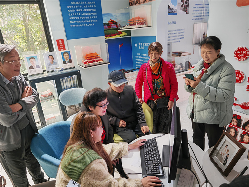 拍摄完毕后,参与拍摄的居民们围坐在一起,认真地挑选照片。居民们纷纷表示,社区想得真周到,让他们能留下这么珍贵的回忆。