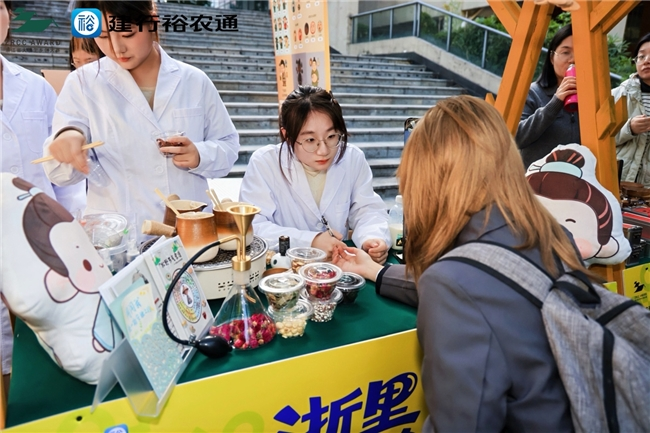 大赛闭幕式暨颁奖典礼举办前,浙江工业大学之江学院体育馆外提前开设成果市集,成为现场一大亮点。市集上,各高校参赛团队搭建展台,集中展示大赛中的创意成果——既有乡野土特产、非遗文创产品等实物,也有乡村景观设计图等成果资料。同学们热情地向围观师生、嘉宾讲解项目理念与落地价值,不少展示品还设置了互动体验环节,吸引众多人驻足观看、交流咨询,提前为仪式营造了浓厚的成果分享氛围。(浙江财经大学)