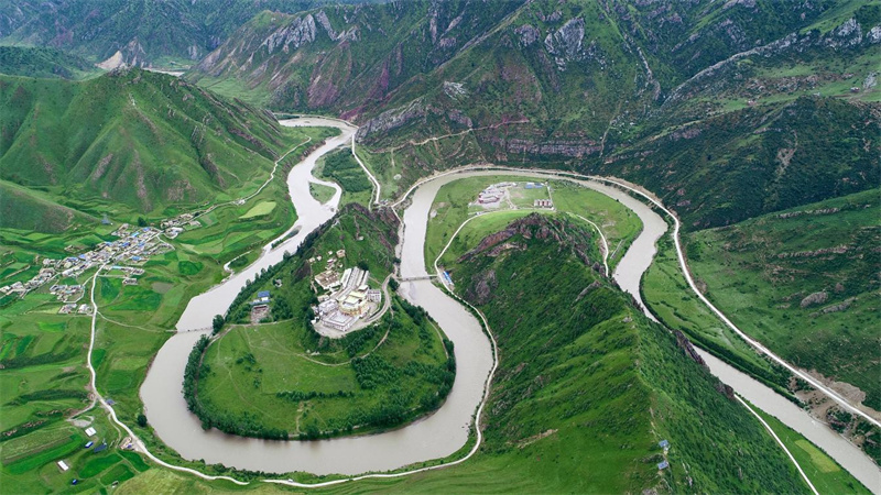 此时,在雨水的滋润下,扎曲河蜿蜒曲折,孜曲河碧波荡漾,巴曲河柔情缱绻,热曲河波光粼粼,吉曲河水波悠悠。东经 95°21′58″至 97°07′0″,北纬 31°32′20″至 32°43′46″之间,五条水系宛如丝带,在囊谦 1.21万平方公里的土地上,勾勒出澜沧江园区的动人画卷,书写着大自然的壮美诗篇。