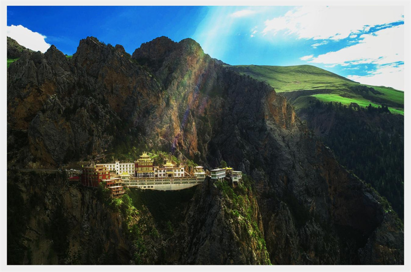 尕尔寺大峡谷悬崖古寺,岩画与山花叠化