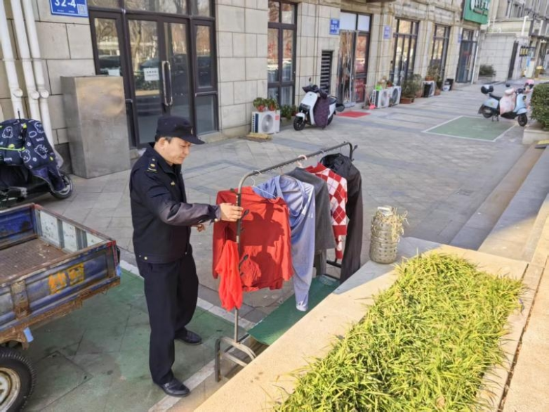 见状,队员们迅速行动,第一时间联系涉事商户,秉持“文明执法、热情服务”原则,耐心宣讲城市管理相关规定,详细说明沿街晾晒的不良影响。经劝导教育,商户深刻认识到错误,当场致歉并承诺严格遵守市容管理要求。随后,城管队员主动协助商户,小心取下树上衣物。规范有序的处置获得周边群众一致认可。