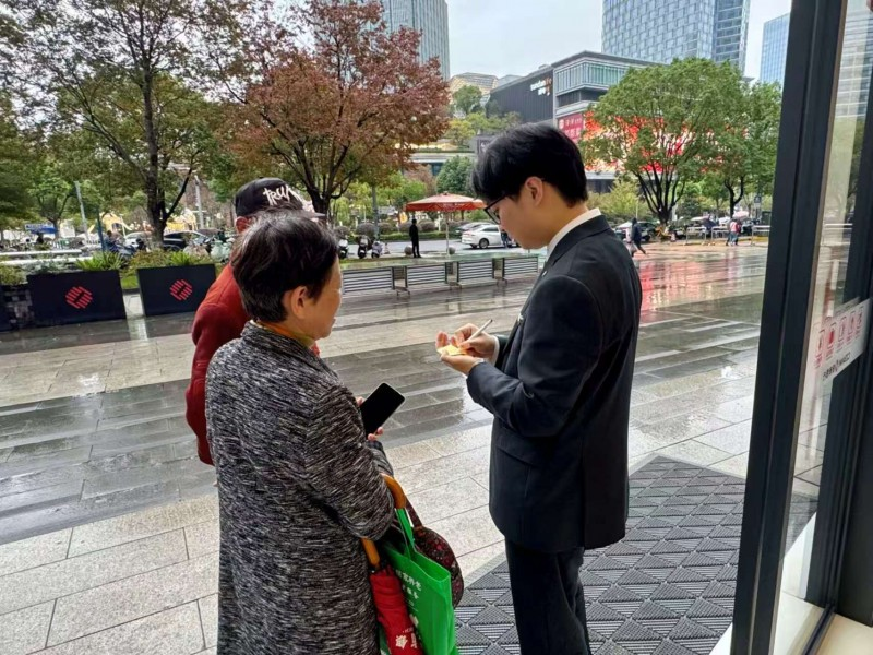 了解情况后,大堂经理屈皓锋第一时间安抚老人情绪,与老人耐心沟通。考虑到两人年事已高,自行寻找路线易发生不便,大堂经理当即拿出手机为两位老人呼叫网约车,仔细核对目的地地址、确认车辆信息后,还贴心告知老人乘车注意事项,直至将二人安全送上车。