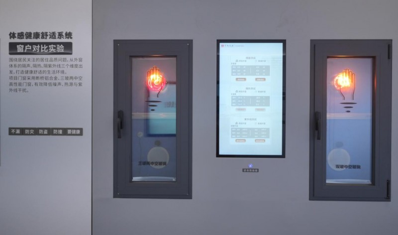 房屋窗户和楼板的防噪音性能也是影响居住体验的一个重要方面。笔者在现场看到两组降噪比对实验:一组是外窗降噪实验,最新推出的“三玻两中空”优质窗户,比普通窗户在隔音、隔热、隔紫外线三个维度上均实现性能大幅跃升;楼板隔音性能关系生活舒适度和邻里关系,企业与清华大学建筑声学实验室合作进行楼板降噪实验,新型楼板增加橡胶隔声减震垫,形成隔音屏障,比普通楼板噪音阻隔性能有大幅提升,隔音效果更好。