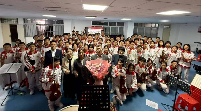 著名指挥家、中国爱乐乐团常任指挥夏小汤前往越秀区东风东路小学和广州中学,他以其专业的指挥技巧和丰富的舞台经验,为乐团成员们提供了宝贵的指导。在他的悉心指导下,乐手们逐渐掌握了技巧,演奏也变得更加流畅和谐。整个排练室里回荡着美妙的音乐,仿佛置身于一场盛大的音乐会之中。排练结束后,夏小汤对乐手们的表现给予了高度评价。他鼓励他们要继续保持对音乐的热爱和执着,不断努力提升自己的演奏水平。