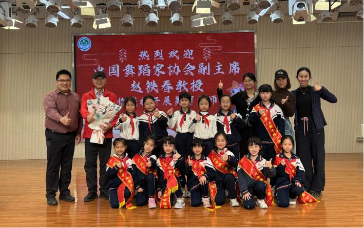 中国老教授协会“百师进百校美育工程”专家委员会秘书长、美育创新融合工作委员会常务副主任兼秘书长黄俭与华南理工大学老教授协会理事长吴业春,在荔湾区詹天佑小学开展联合讲座。黄俭教授一直以来致力于从舞蹈美育的角度探索艺术教育的深层意义与价值,他不仅关注舞蹈技巧的培养,更注重通过舞蹈这一艺术形式,全面提升学生的审美能力、情感表达能力和文化素养。他认为,舞蹈不仅是肢体的艺术展现,更是心灵的表达与情感的释放,能够在潜移默化中塑造学生的品格,培养他们对美的感知与追求。